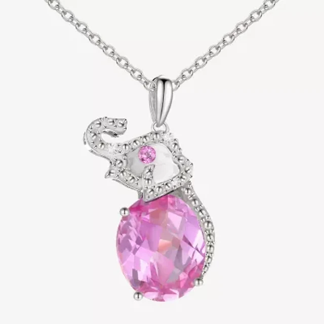 Lab Created Pink & White Sapphire "I Heart Mom" Pendant Necklace