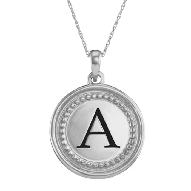 Personalized 10K White Gold Initial Disc Pendant Necklace