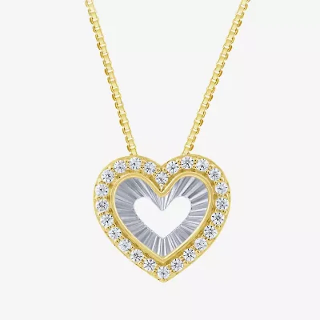Womens 1/10 CT. T.W. Lab Grown White Diamond 14K Gold Over Silver Heart 18 1/2 Inch Pendant Necklace