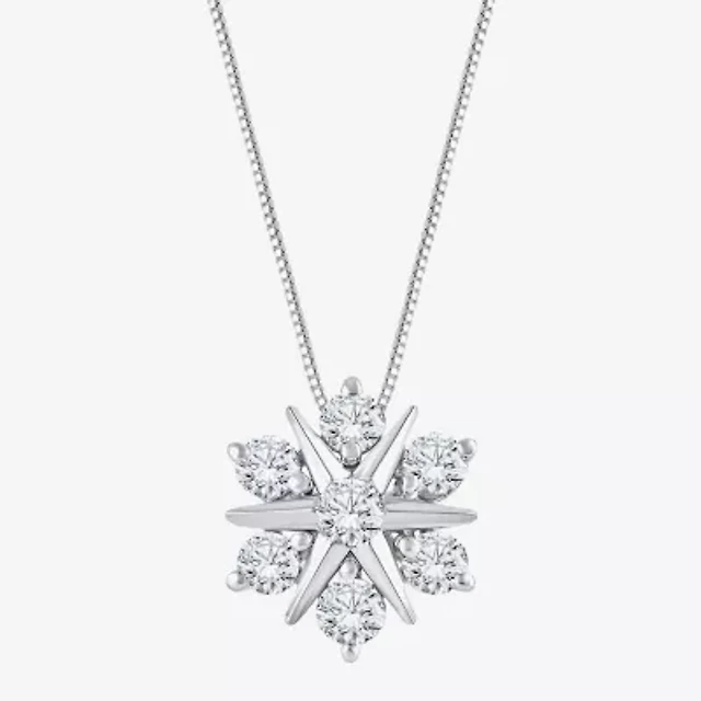 Diamond Blossom (G / Si2) Womens 1 CT. T.W. Lab Grown White 10K Gold Heart 18 Inch Pendant Necklace