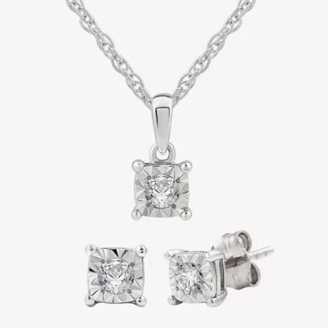 Yes, Please! (G-H, Si2-I1) Womens 1/4 CT. T.W. Lab Grown White Diamond Sterling Silver 2 Pair Jewelry Set
