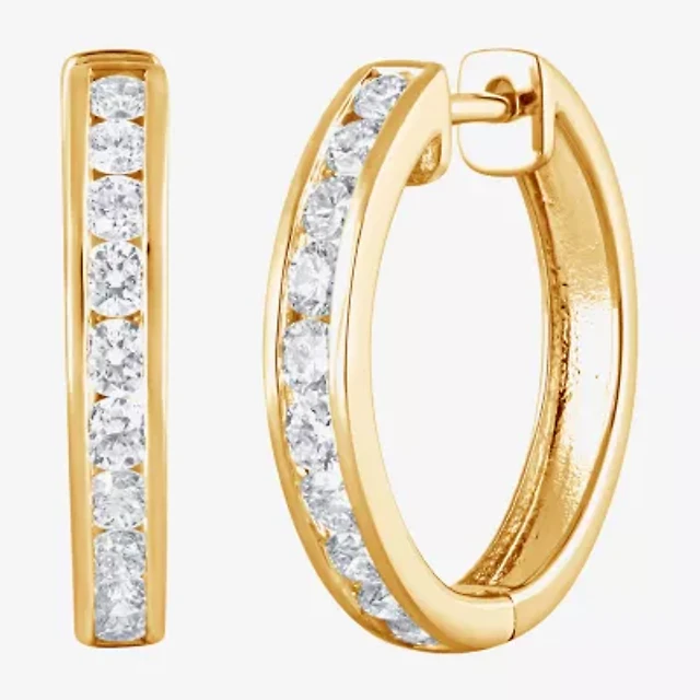 (F/Si2) Womens 1 CT. T.W. Lab Grown White Diamond 14K Gold Over Silver 14.3mm Hoop Earrings