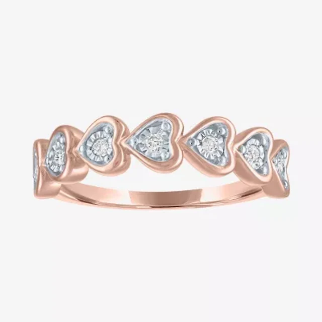 (G-H / Si2-I1) Womens 1/10 CT. T.W. Lab Grown White Diamond 14K Rose Gold Over Silver Heart Band