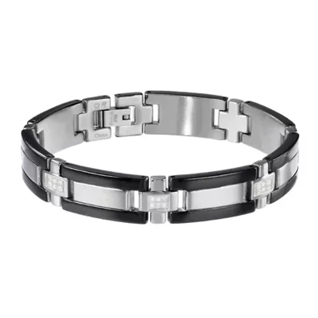 Black Ceramic & Stainless Steel Patterned Band