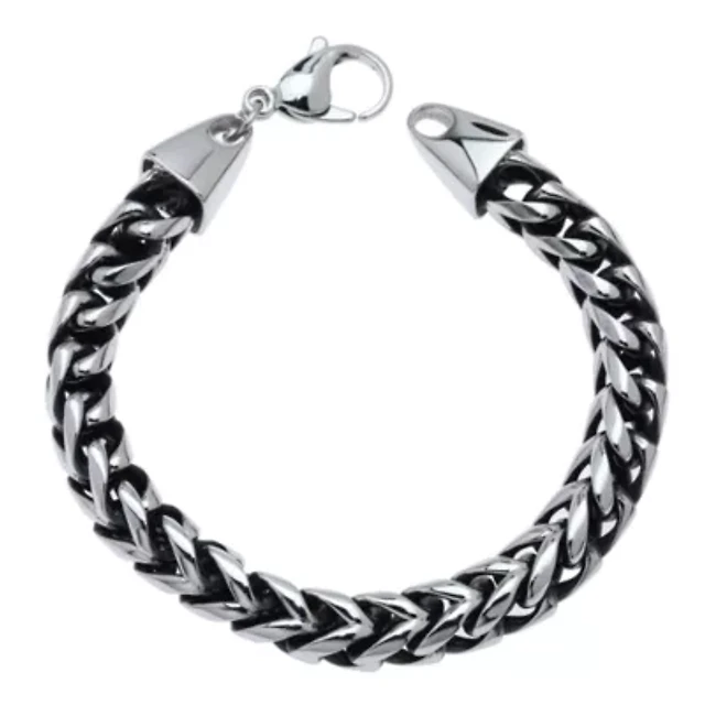 Mens Stainless Steel Chain Bracelet with Lock Extender