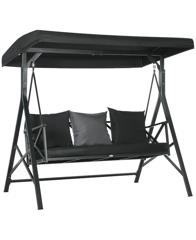 Flynama 3-Seat Patio Swing Chair, Porch Swing Glider with Cushion, 3 Throw Pillows & Adjustable Canopy for Porch, Garden, Poolside, Backyard, Black