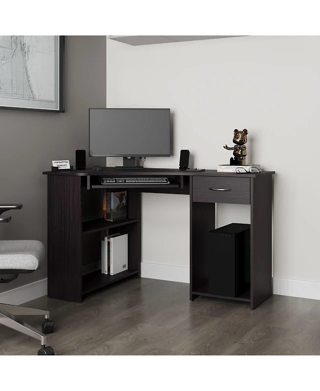 Fm Furniture Ekko Corner Computer Desk, L-Shaped Home Office Desk with Drawer, Shelves