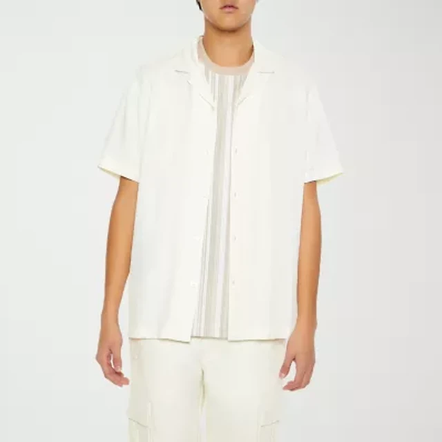 Forever 21 Mens Long Sleeve Textured Button-Down Shirt