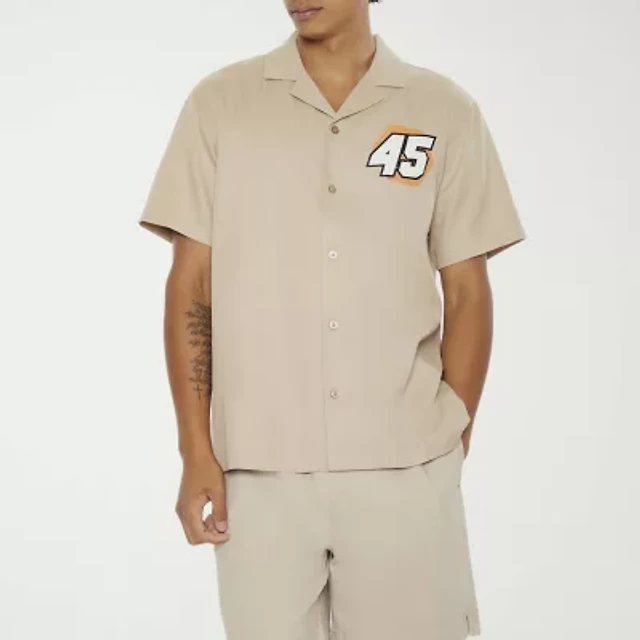 Forever 21 Mens Short Sleeve Logo Button-Down Shirt