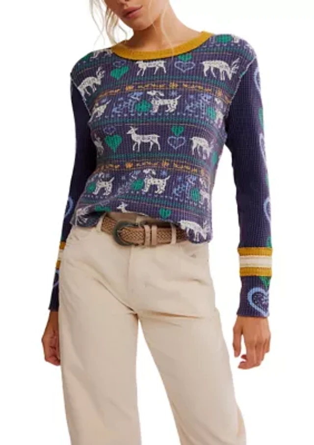 Free People We The Free Nouvelle Printed Crew Neck Long Sleeve Sweater