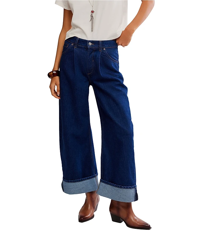 Free People Alia Mid Rise Wide Leg Denim Jeans
