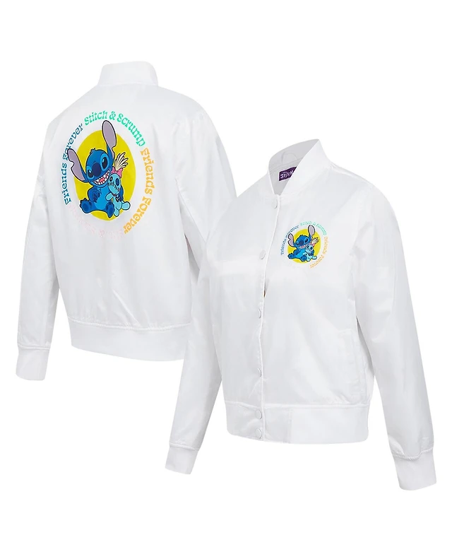 Freeze Max Women's White Lilo and Stitch Scrump Full-Snap Satin Jacket