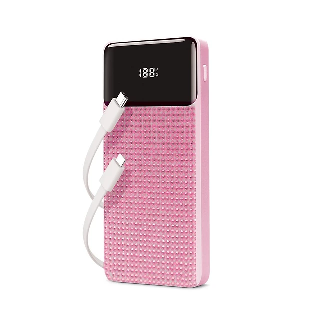 GabbaGoods 10,000mAh Rapid Charging Power Bank with Lcd Battery Display, 2 Buillt-In Cables, Bling Design