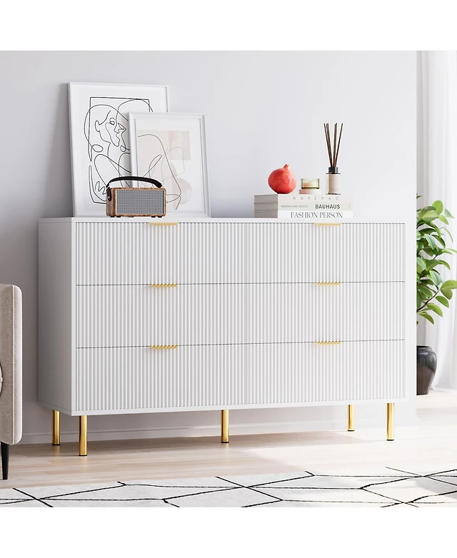 gaomon Dresser For Bedroom With 6 Drawers, Wood Drawer Dresser Chest Of Drawers For Closet, Living Room, Hallway, Nursery, Kids Bedroom(White)