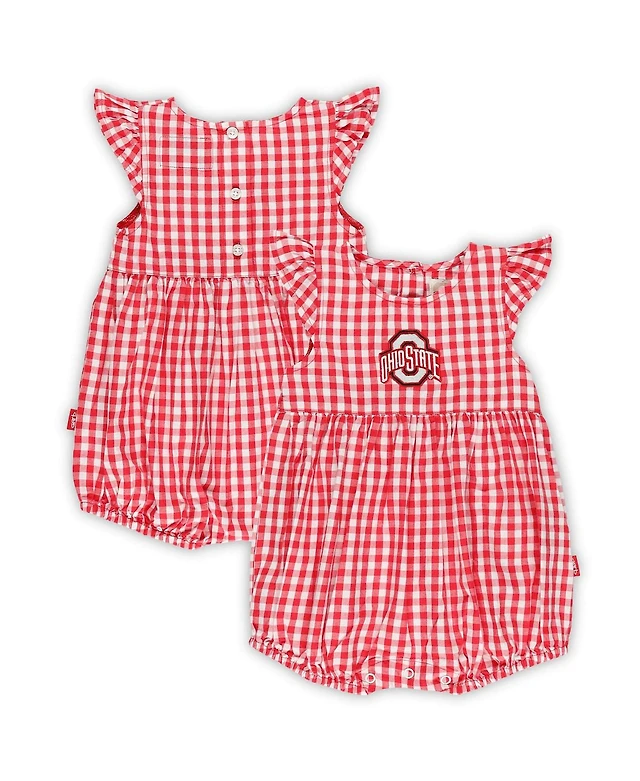 Garb Girl's Baby Boys and Girls Scarlet Ohio State Buckeyes Cara Gingham Ruffled Bodysuit