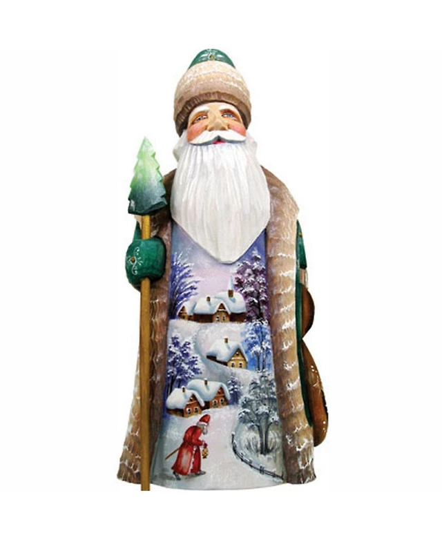 G.DeBrekht Woodcarved and Hand Painted Santa Midnight Yuletide Chorus with Bag Figurine