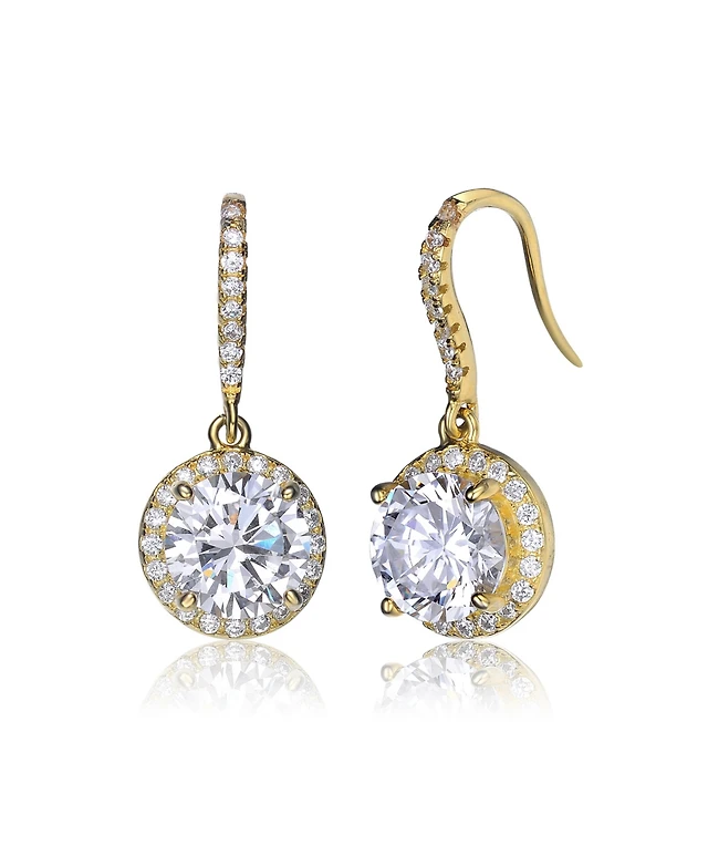 Sterling Silver with 14K Gold Plated Clear Round Cubic Zirconia Pear Drop Earrings