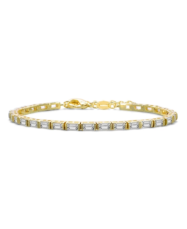 Genevive Sterling Silver 14K Gold Plated with Baguette Cubic Zirconia Bangle Bracelet