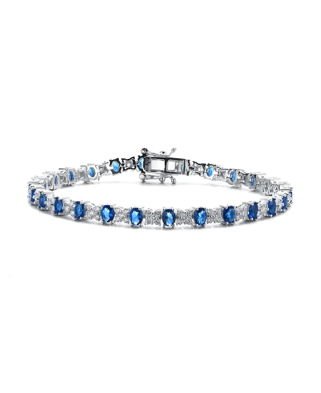 Genevive Sterling Silver Oval Colored Cubic Zirconia Stylish Tennis Bracelet