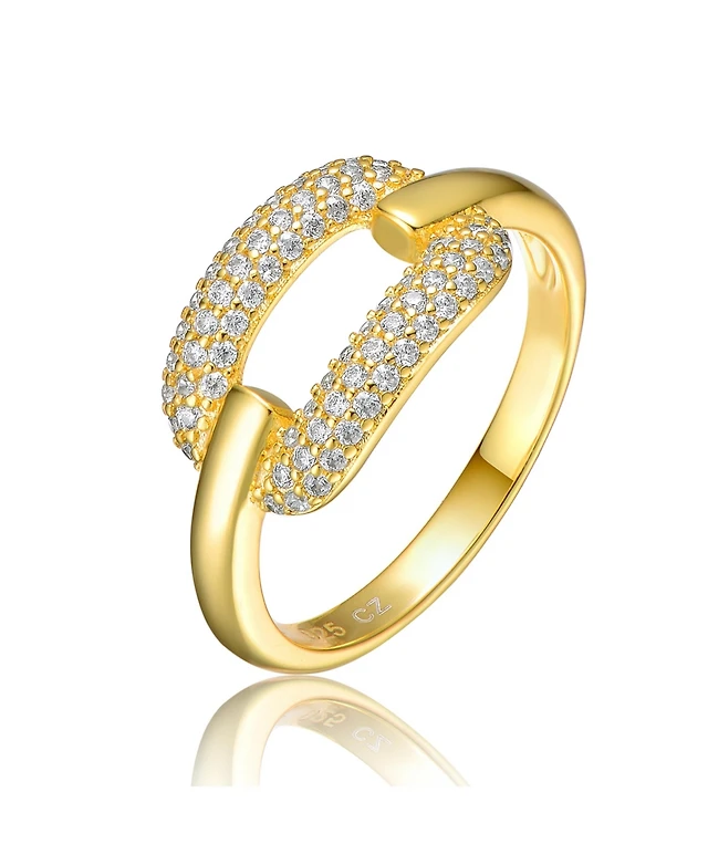 Sterling Silver 14k Yellow Gold Plated with Cubic Zirconias Oblong Chain Dangle Earrings