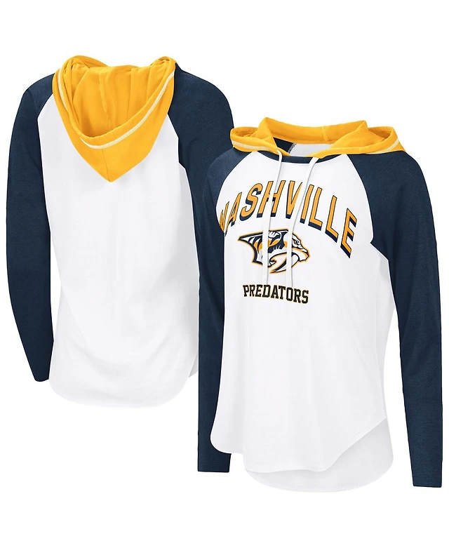 G-iii 4Her by Carl Banks Women's White Nashville Predators Vip Raglan Long Sleeve Hoodie T-Shirt