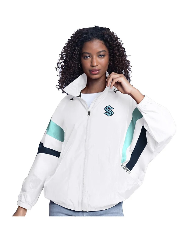 G-iii Sports by Carl Banks Women's White Seattle Kraken Game News Oversized Full-Zip Hoodie Jacket