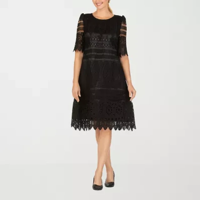 Giovanna Signature Womens Short Sleeve Eyelet Midi Fit + Flare Dress