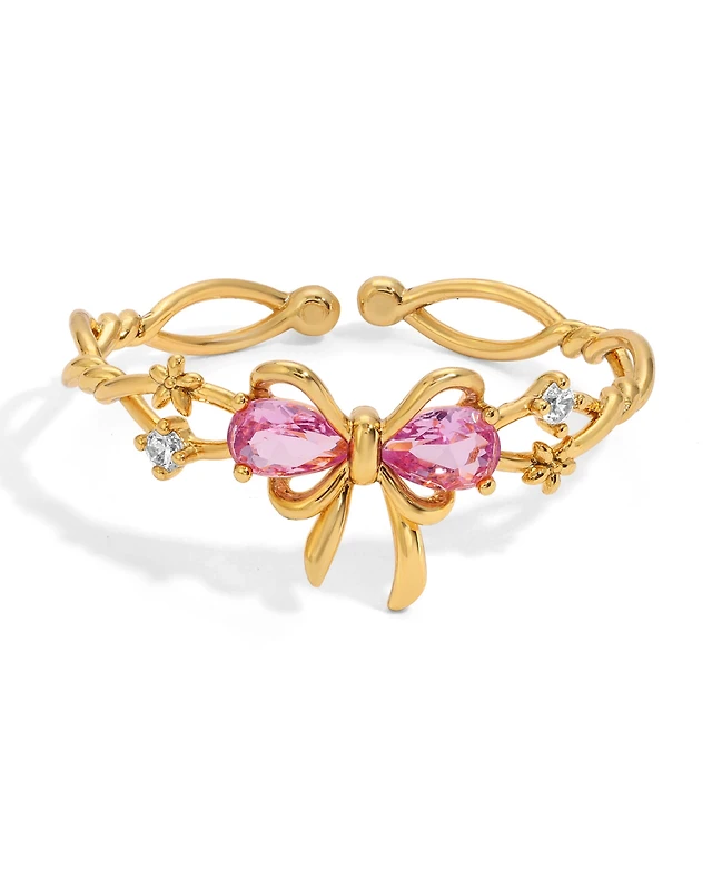 Girls Crew Pink Faux Cubic Zirconia Pretty in Pink Bow Ring