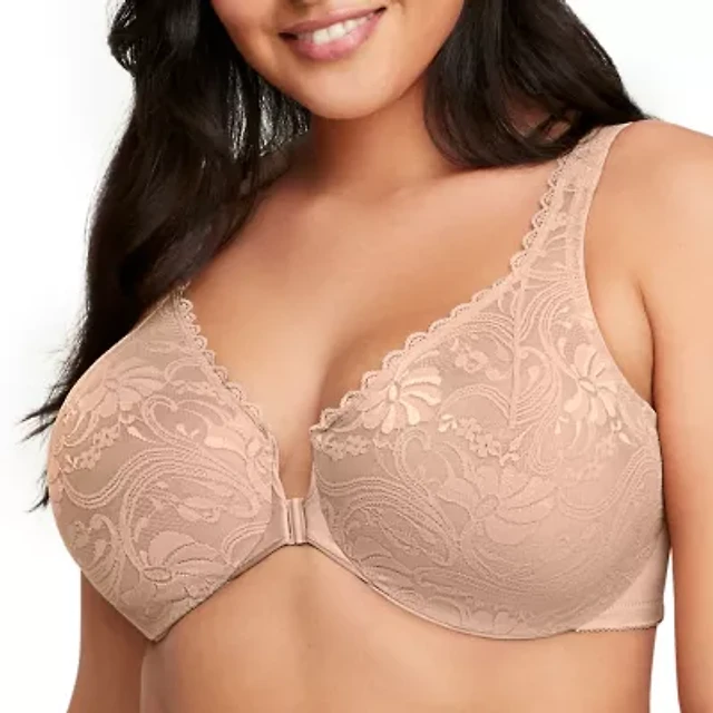 Glamorise Women's Full Figure Plus Wonderwire Front Close Stretch Lace Bra 9245