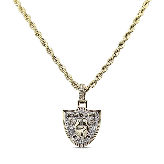GLD Las Vegas Raiders 18K Yellow Gold Logo Pendant & 20" Rope Chain
