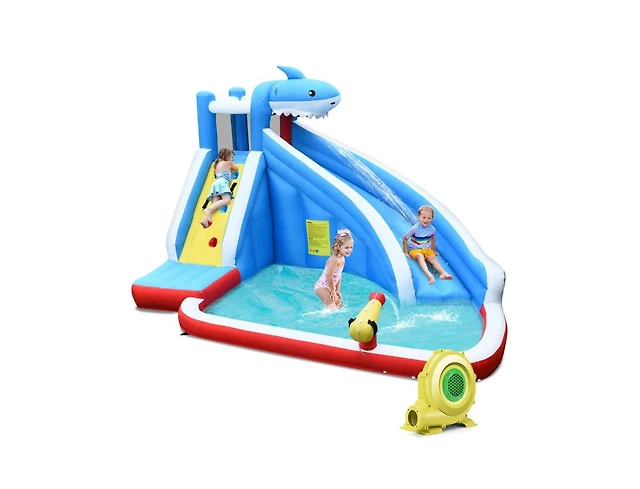 4-in-1 Inflatable Water Slide Park with Long Slide and 735W Blower