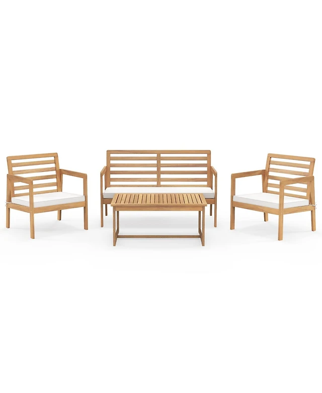 4 Piece Wood Patio Furniture with Armchairs Loveseat and Table-Off