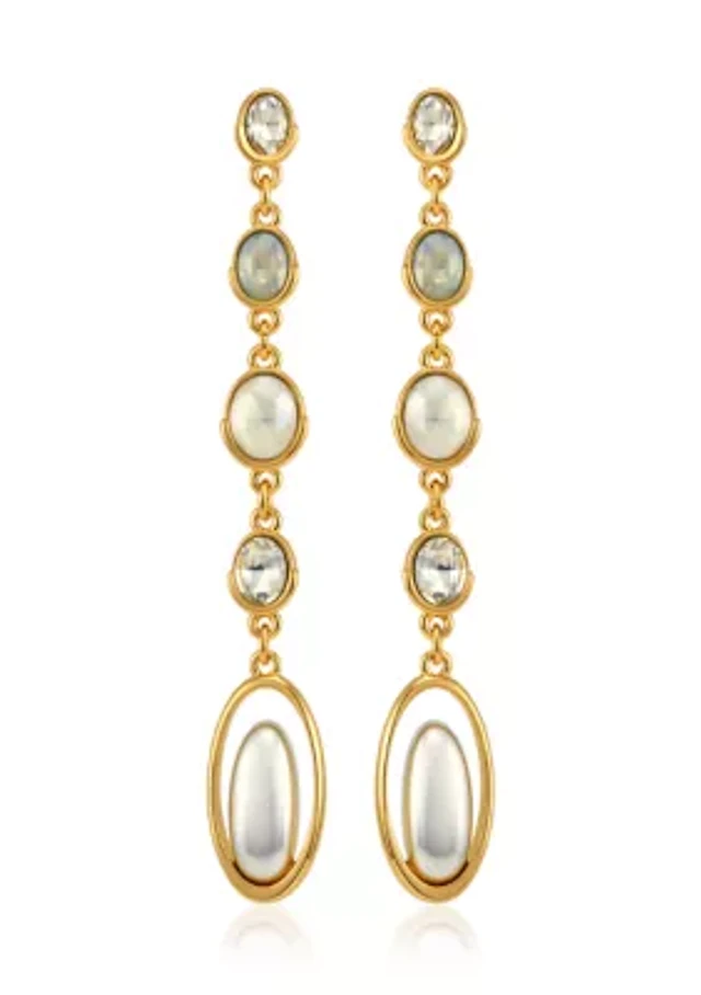 Guess Gold-Tone Mixed Color Stone Flower Front-Facing Drop Hoop Earrings