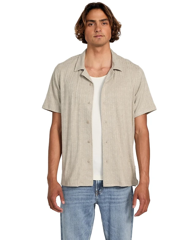Guess Short Sleeve Diamond Jacquard Button-Front Camp Shirt