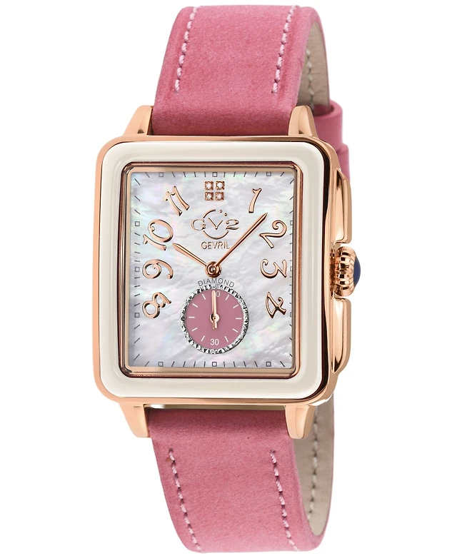 GV2 by Gevril Women's Bari Diva Rose Pink Leather Strap Watch, 34mm