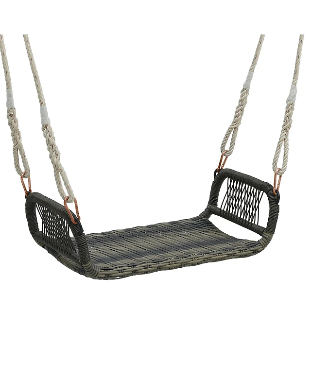 Gymax Rattan Patio Porch Swing 2-Person Cushioned Chair Bench w/ Hanging Ropes