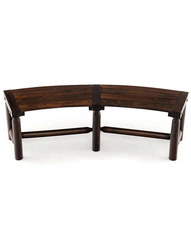 Gymax 2 Pcs Solid Acacia Wood Patio Bench Dining Bench Outdoor W/Rustic Metal Legs