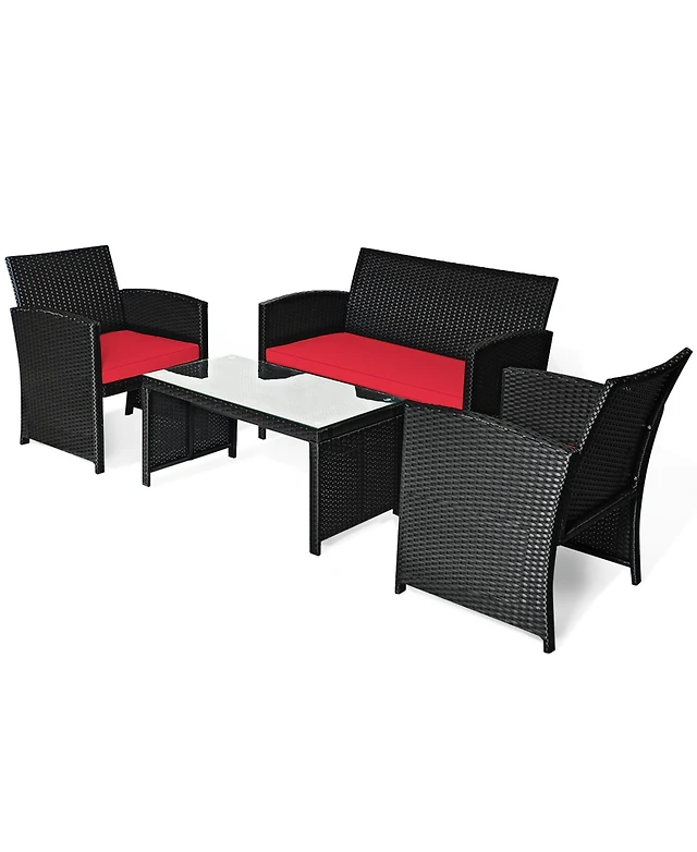 Gymax 5PCS Patio Pe Wicker Dining Set Table and Chairs w/ Cushions 1.9'' Umbrella Hole