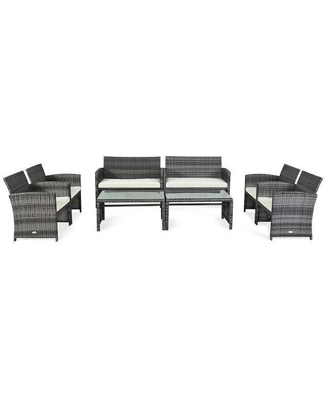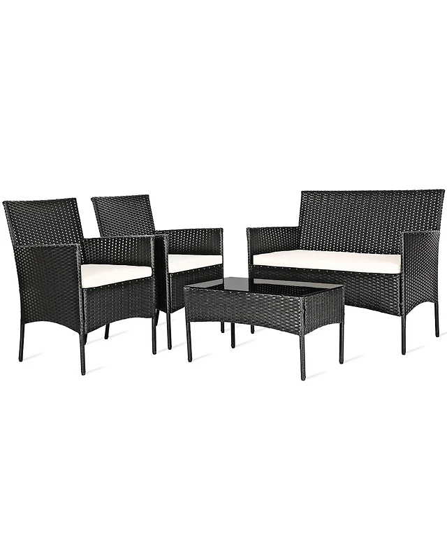 Gymax Set of 4 Rattan Furniture Set Cushioned Sofa Chair Coffee Table Patio