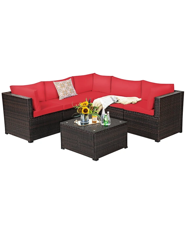 Gymax 5 Piece Outdoor Patio Rattan Conversation Sofa Furniture Set w/ Cushions