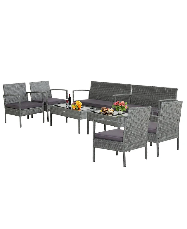 Gymax Set of 7 Rattan Furniture Set Sectional Sofa Cushioned Patio