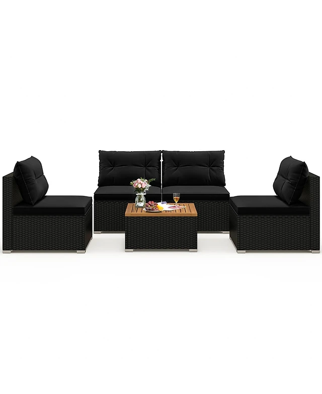 Gymax Piece Patio Pe Rattan Conversation Set Acacia Wood Furniture Set w/ Cushions