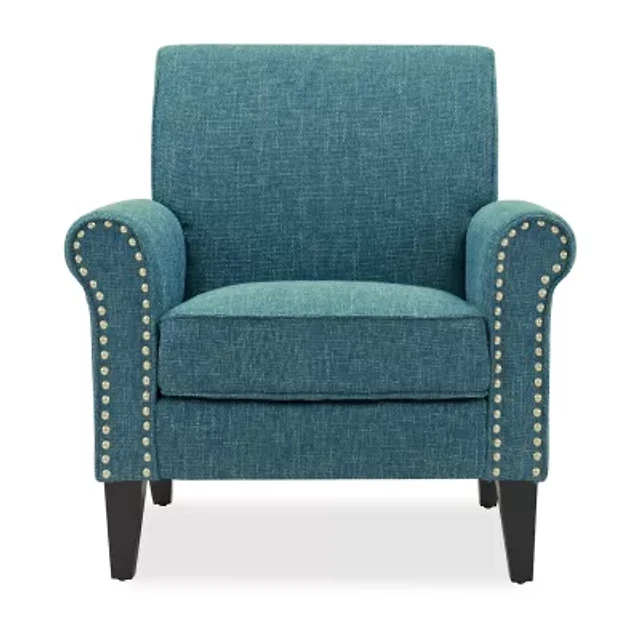 Jean Traditional Rolled Arm Accent Chair with Pewter Nailheads Chenille