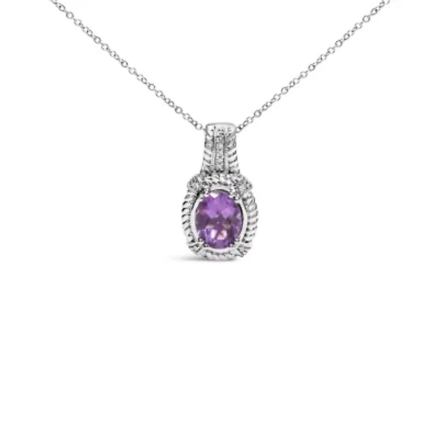 Sterling Silver 5x7 MM Oval Purple Amethyst & Diamond Halo Link Bracelet