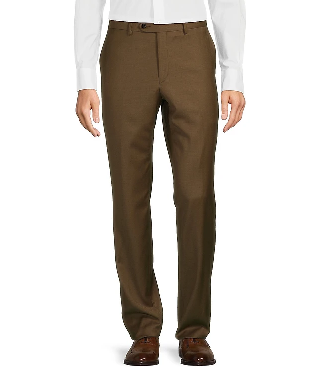 Hickey Freeman Modern Fit Flat-Front Solid Dress Pants