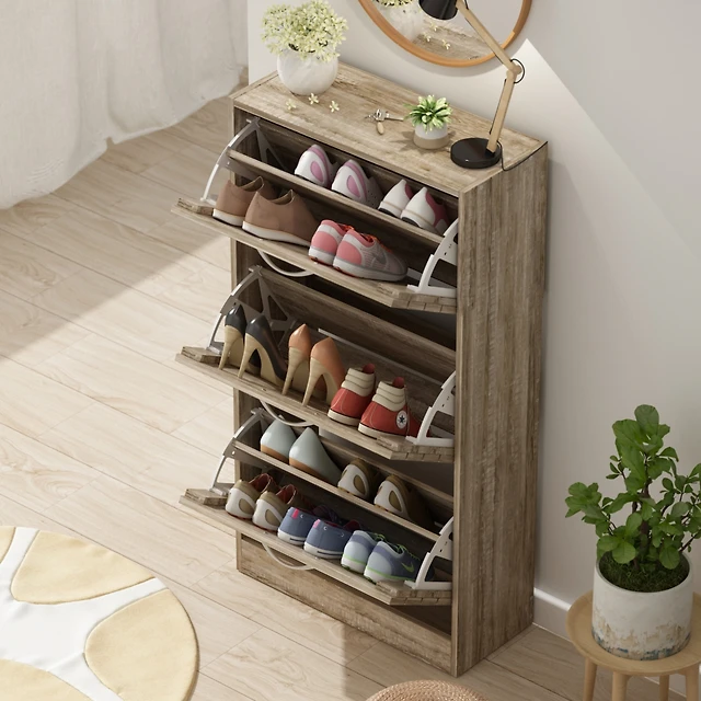 Single-drawer 4-door shoe cabinet, white multi-functional shoe rack, movable shelves