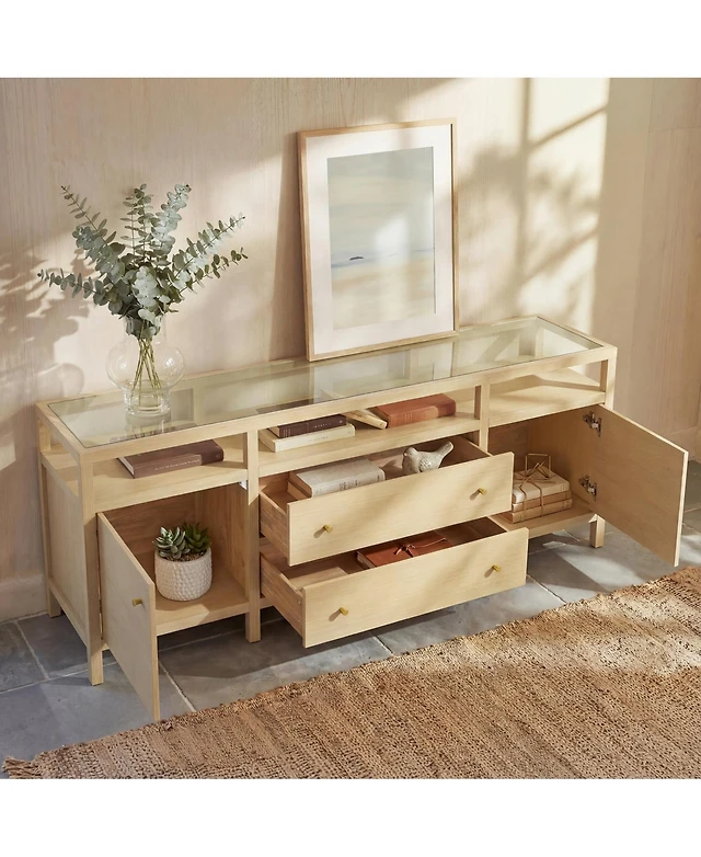 Homsee Solid Wood Sideboard With Tempered Glass Top, Pre-Assembled Cabinet , Tv Stand ,Created for Macy's