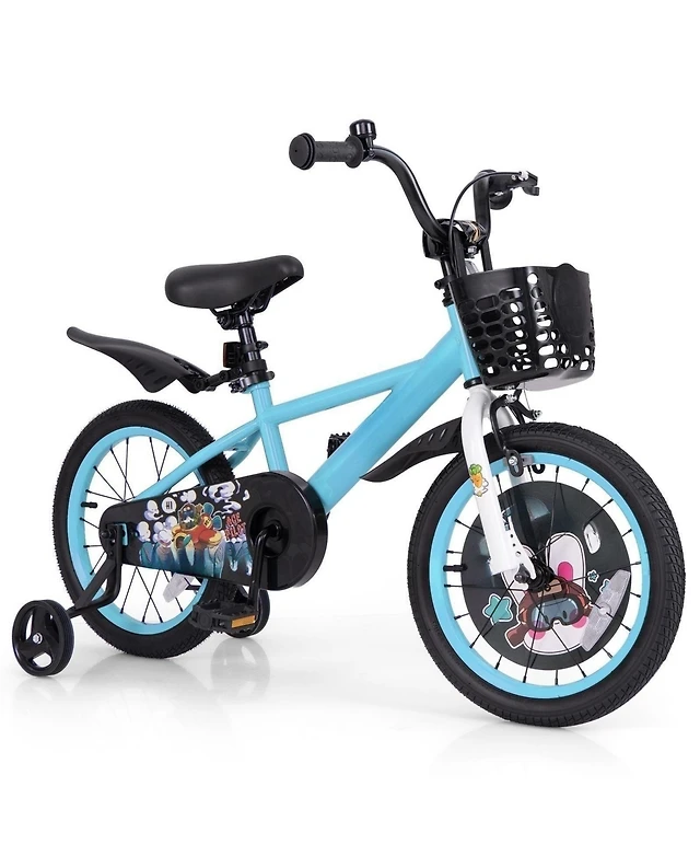 Hongge 18-Inch Kids Bike with Adjustable Handlebar, Saddle, and Training Wheels - Blue