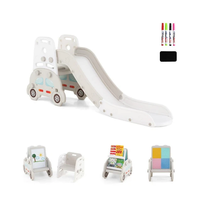 Hongge Kids Folding Slide and Climber Playset with Basketball Hoop and Indoor Outdoor Fun