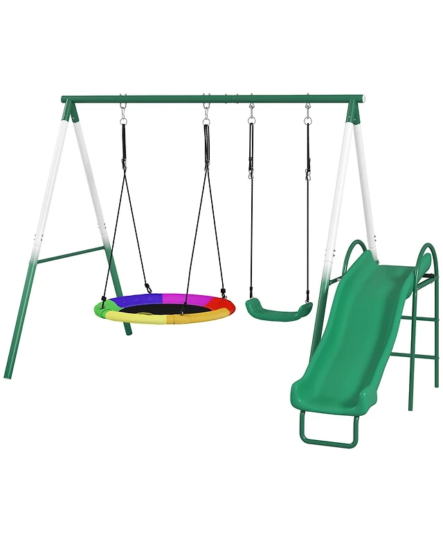 Hongge Outdoor Metal Swing Set with Two Seats and Glider